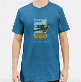 Heavy cotton t-shirt, sapphire blue with laser printed image